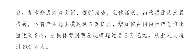 政策先行,《“十四五”體育發(fā)展規(guī)劃》提出,到2025年體育產(chǎn)業(yè)總規(guī)模將達到5萬億元,居民體育消費總規(guī)模超過2.8萬億元。且《廣州市體育發(fā)展“十四五”規(guī)劃》主要目標(biāo)表明:全民健身設(shè)施更加完善,配置更加合理,運動健身環(huán)境持續(xù)改善。人均體育場地面積達2.6平方米,每萬人擁有足球場地數(shù)量不低于0.9塊。