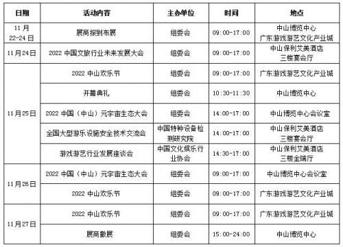 第十五屆中山國(guó)際游戲游藝博覽交易會(huì)暨2022中山國(guó)際元宇宙生態(tài)博覽會(huì)(簡(jiǎn)稱2022中山游博會(huì)&中山元博會(huì))、2022中山歡樂(lè)節(jié)將于11月25-27日在廣東·中山博覽中心、中山港口·新世界國(guó)際會(huì)展中心/廣東游戲游藝文化產(chǎn)業(yè)城舉辦。本屆博覽會(huì)展覽面積達(dá)30,000平方米,400家企業(yè)參展匯聚產(chǎn)業(yè)精品,致力挖掘行業(yè)資源優(yōu)勢(shì),助推供需對(duì)接,是企業(yè)開(kāi)拓市場(chǎng)的絕佳選擇。