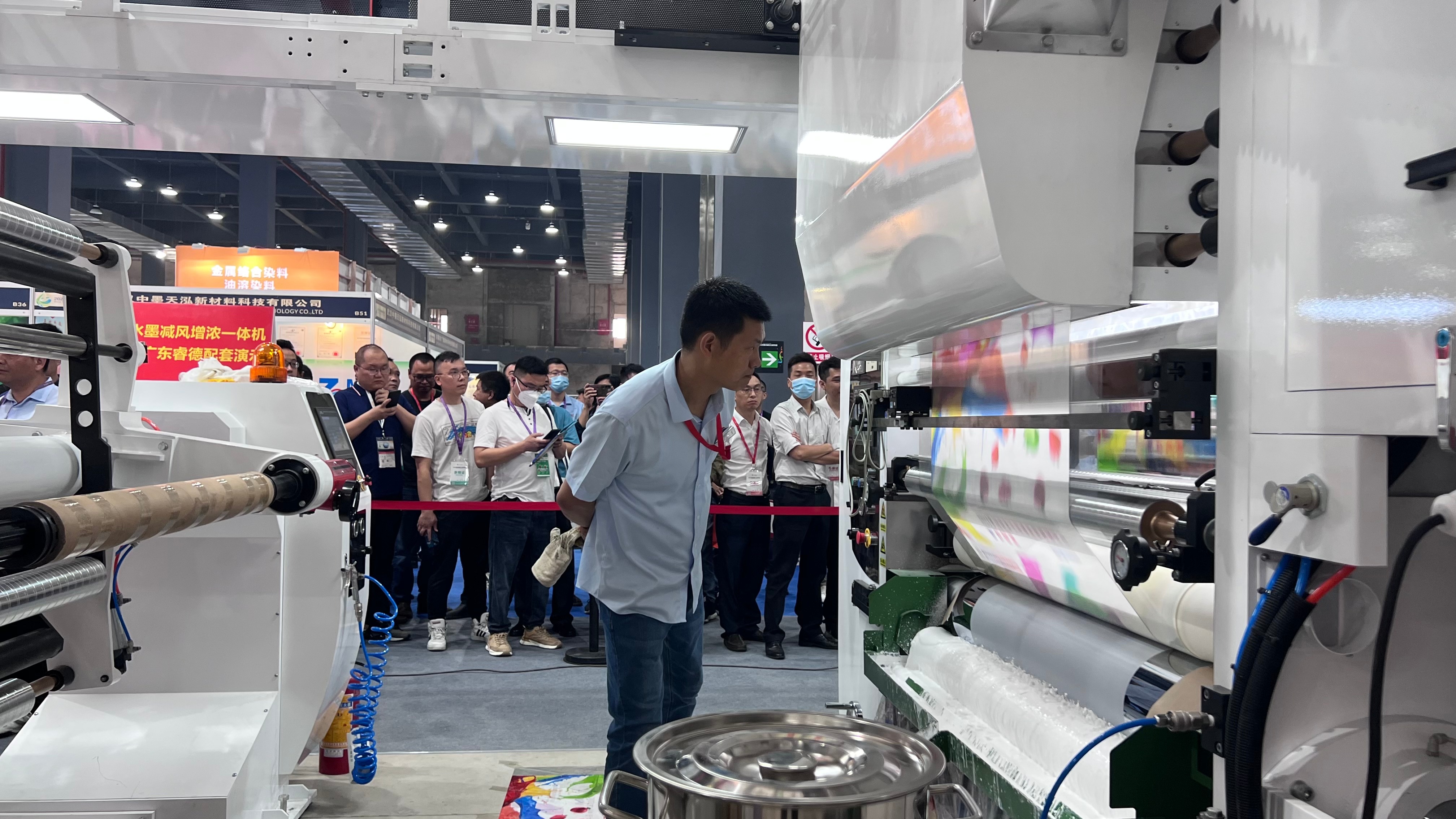 “這是印刷區(qū),參展企業(yè)的油墨通過(guò)設(shè)備印刷出來(lái),油墨干沒(méi)干?效果好不好?客商都能直觀看到。”在博覽會(huì)的演示區(qū),參展設(shè)備企業(yè)負(fù)責(zé)人告訴記者,主辦方專(zhuān)門(mén)設(shè)置了演示區(qū),給客商最直觀的感受。演示開(kāi)始后,大型設(shè)備高速運(yùn)轉(zhuǎn),演示區(qū)外排起了長(zhǎng)龍,一些客商拿出手機(jī),拍攝油墨材料及印刷成品。