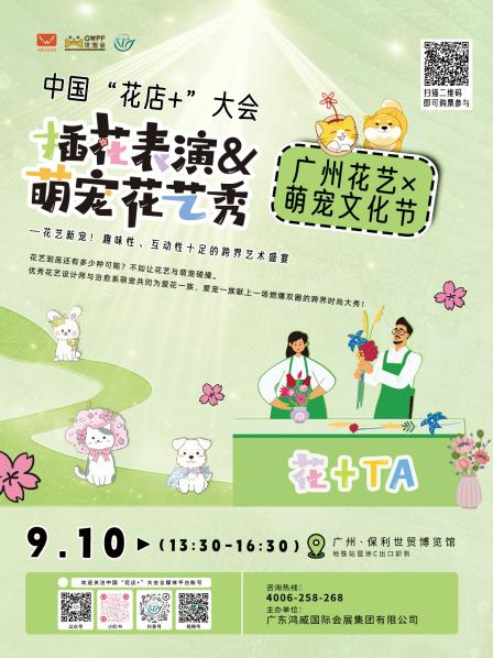 在“買花悅己”“精致生活”的潮流風(fēng)向下,花店該如何讓自家的花藝產(chǎn)品在創(chuàng)意設(shè)計的賦能下更大程度地展現(xiàn)花植的自然美,產(chǎn)生更大的商業(yè)價值與市場競爭力?深入新消費營銷環(huán)境,洞察和掌握花藝設(shè)計新需求,為熱愛生活的花友們提供一個“美感爆棚”的花藝交流平臺,2023中國“花店+”大會暨廣州花藝×萌寵文化節(jié)將在9月9-11日在廣州·保利世貿(mào)博覽館舉行,涵蓋“插花表演+萌寵花藝秀+花植市集+花藝空間設(shè)計展”共四大特色板塊。